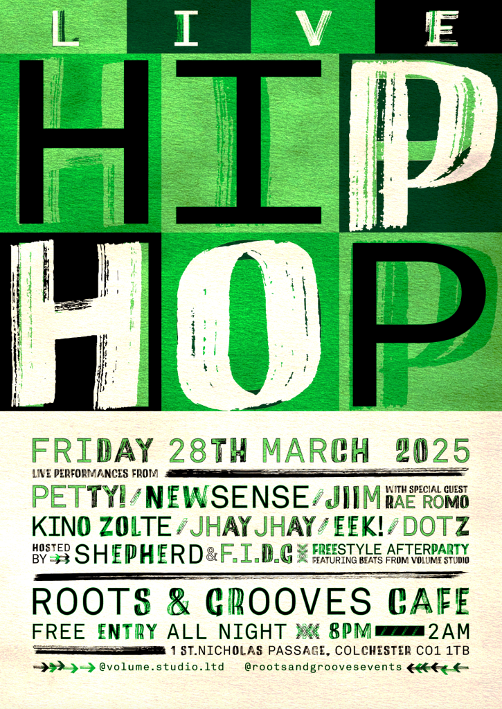 In collaboration with @rootsandgroovescafe, we cannot wait to bring you, The Live Hip Hop show. This event will be Showcasing some of the best new local artists, fresh music from talented producers and a freestyle afterparty all for free, come and join in!